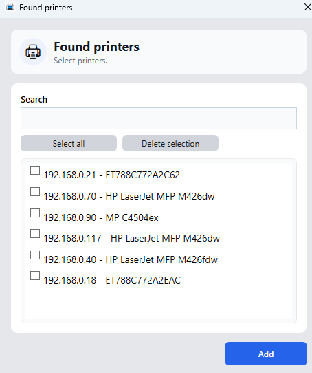 Printers from multiple networks (e.g. VPN-connected sites) can be discovered and managed together